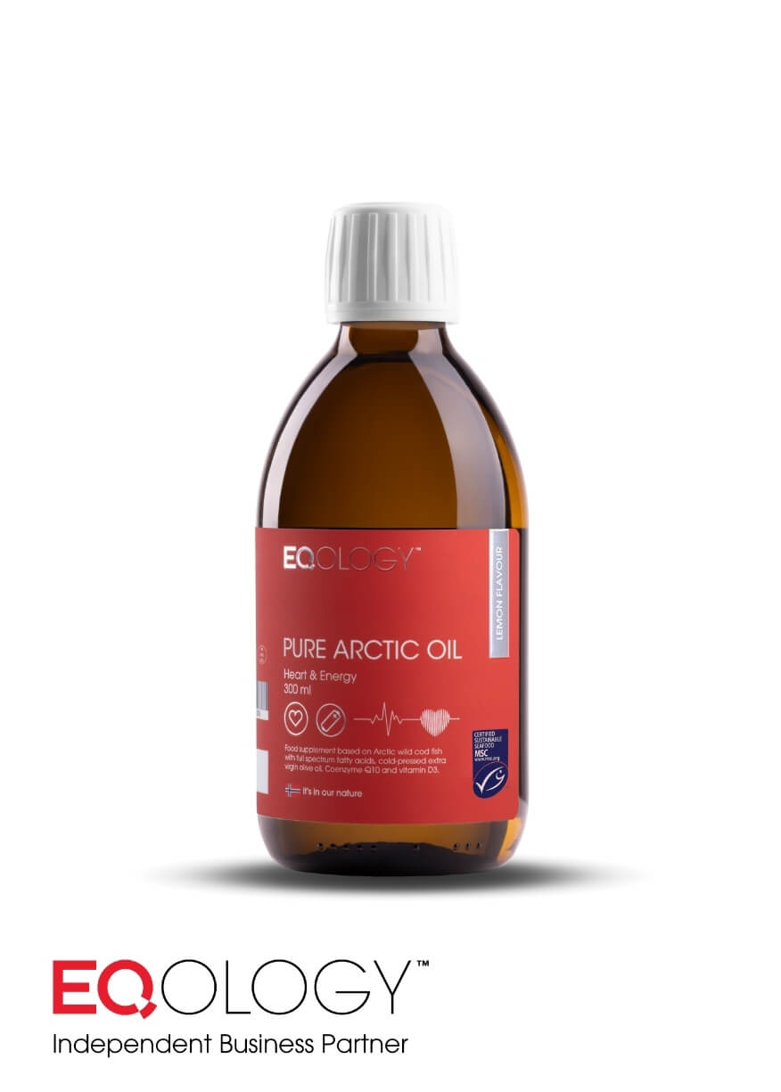 Eqology Pure Arctic Oil Heart & Energy is een premium omega-3 formule voor hartvitaliteit en cellulaire energie. Gemaakt van 100% verse, duurzaam gevangen Arctische wilde kabeljauw, levert deze full-spectrum olie omega-3 vetzuren in elke portie. Verrijkt met co-enzym Q10, koudgeperste biologische extra vierge olijfolie en vitamine D3, ondersteunt het de hartvitaliteit, cellulaire energie en zit het boordevol antioxidanten. Ontworpen voor zuiverheid, kracht en balans – jouw basis voor een actieve levensstijl.