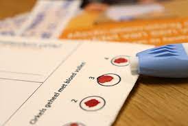 – De test is eenvoudig zelf uit te voeren thuis mbv een vingerprik.
